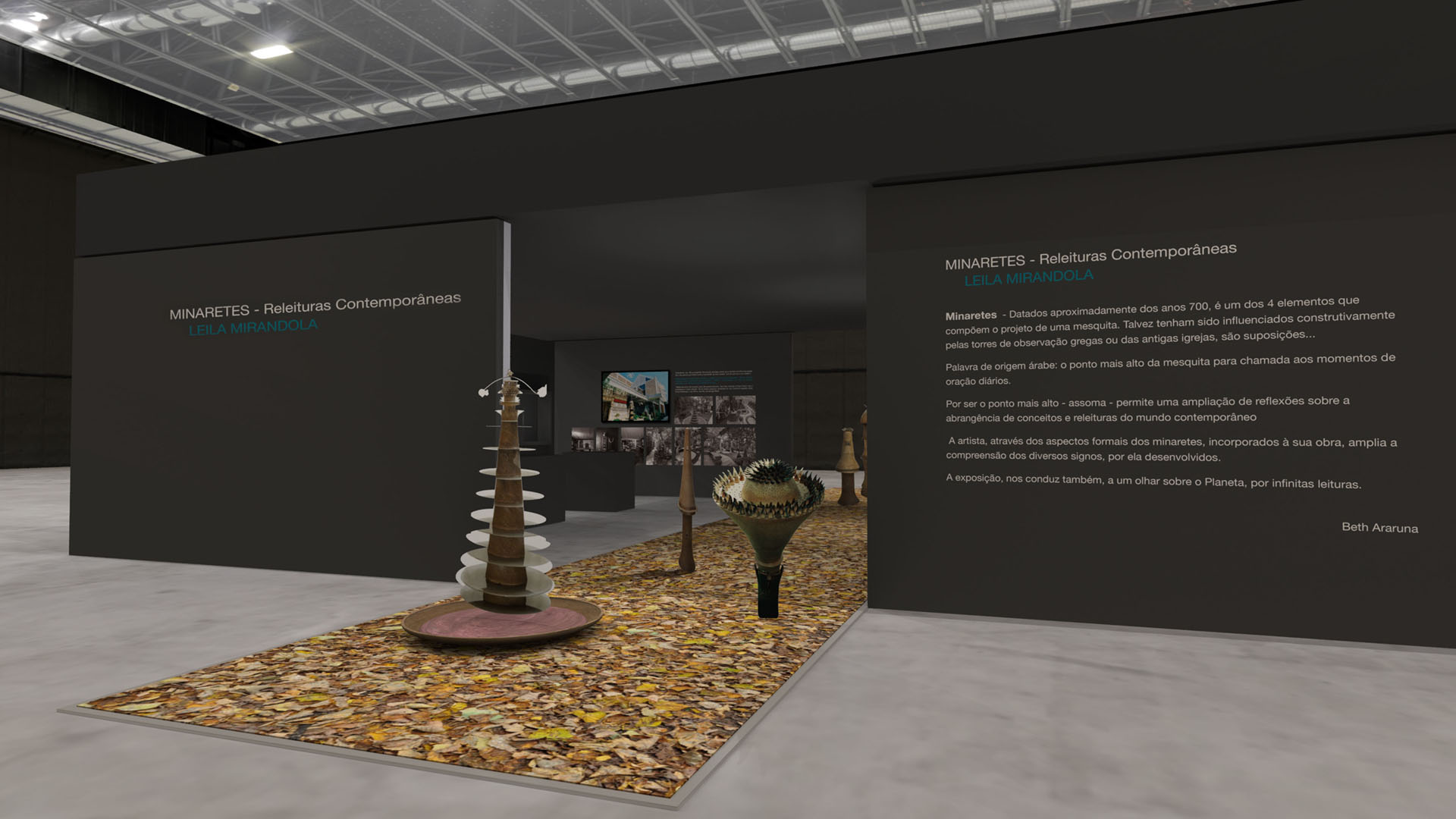 A artista, através dos aspectos formais dos minaretes, incorporados à sua obra, amplia a compreensão dos diversos signos, por ela desenvolvidos. A exposição, nos conduz também, a um olhar sobre o Planeta, por infinitas leituras.