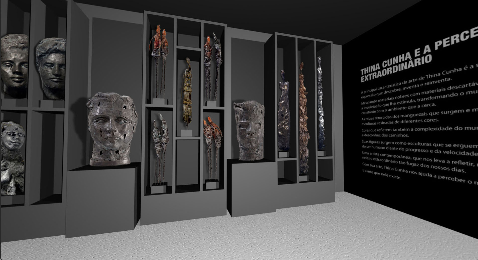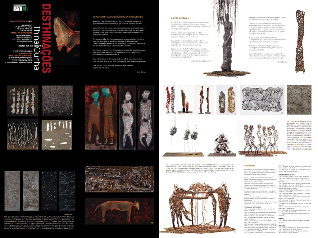 A principal característica da arte de Thina Cunha é a sua múltipla busca pelos diferentes meios de expressão que descobre, inventa e reinventa.
