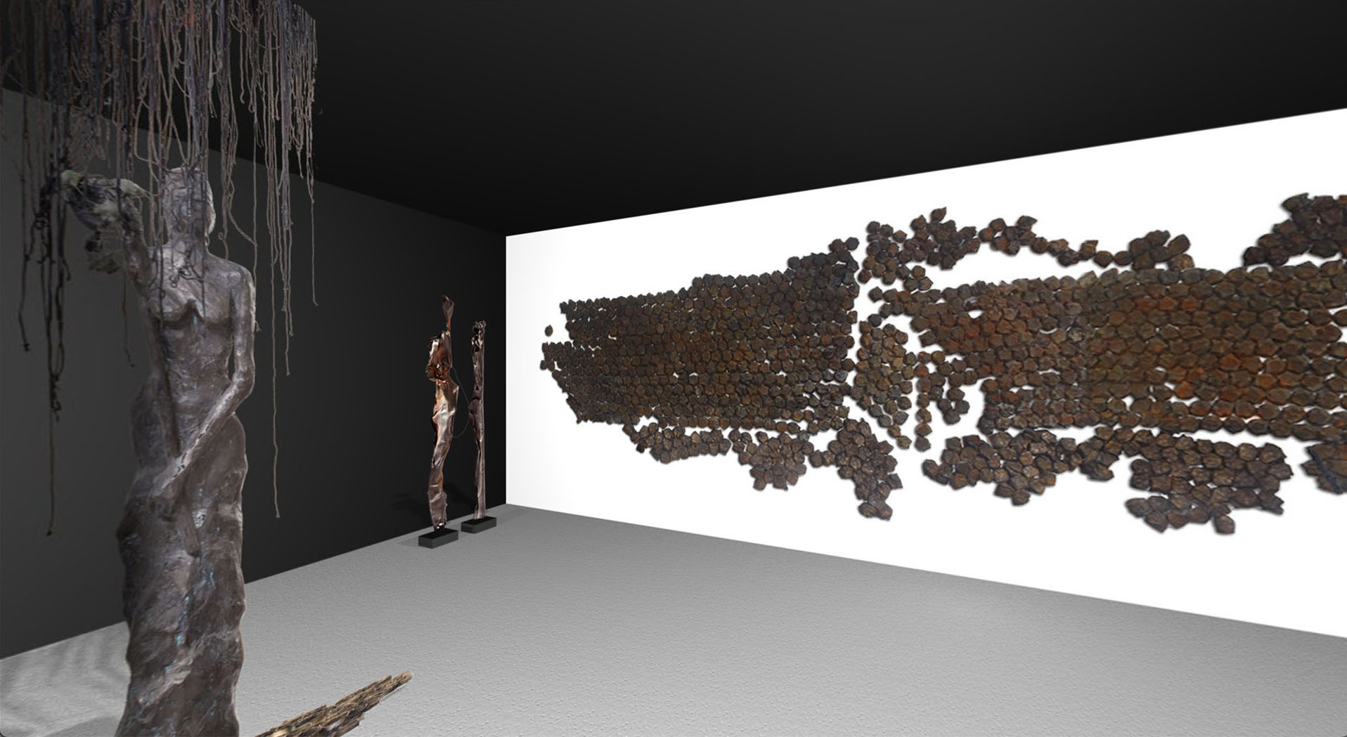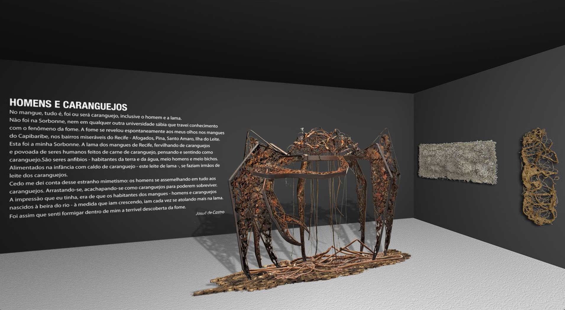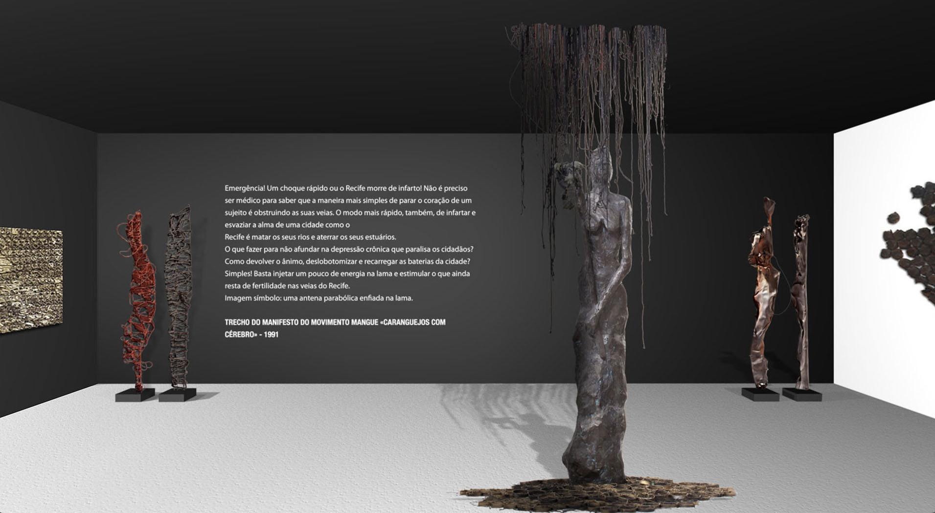 Suas figuras surgem como esculturas que se erguem das águas do mangue para refletir a perplexidade do ser humano diante do progresso e da velocidade do cotidiano do século 21.