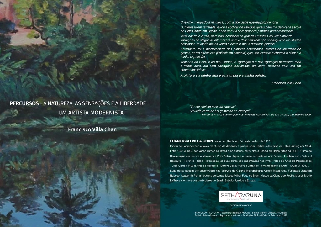 Ver as figurações de paisagem de Francisco Villa-Chan é fazer o caminho das terras de Pernambuco e encontrar o cenário onde as cores do céu, do barro, das folhas, se espalham sob o sol e nos trazem uma agradável sensação de familiaridade.