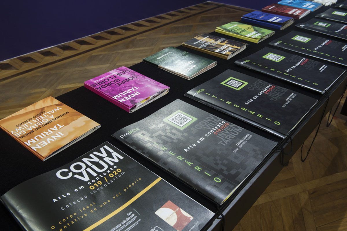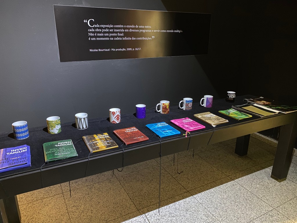 artes gráficas: sinalização da exposição, coleção de cartazes, banners (voil), publicação Itinerario I, Edição Itinerário Individuais Artistas, coleção Inventarium (cadernos de conduta) marcadores de livro, gravuras, canecas.