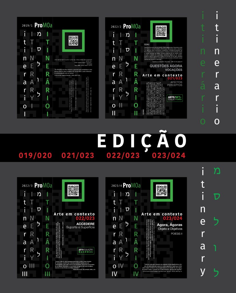 artes gráficas: artes gráficas: projeto da exposição, sinalizaçao da exposicao, artes ProMoa – grupo Chaverim: artes dipticos, artes produtos: cadero/marcador, gravuras, postais e publicaçao Itinerario IV Geral e Edição Itinerários.